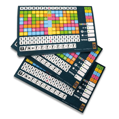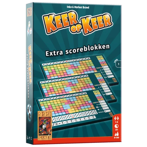 Extra aanvullende scoreblokken voor fanatieke Keer op Keer-spelers. In de doos zitten drie blokken van ‘Level 1’ die identiek zijn aan die in het basisspel.