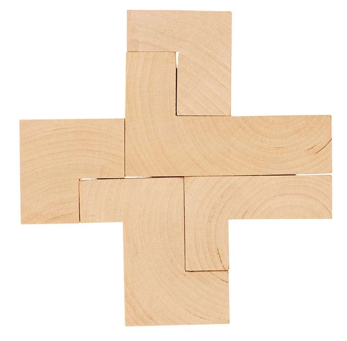 Laat je niet gek maken en leg met de 5 stukjes uit het katoenen zakje een kruis.