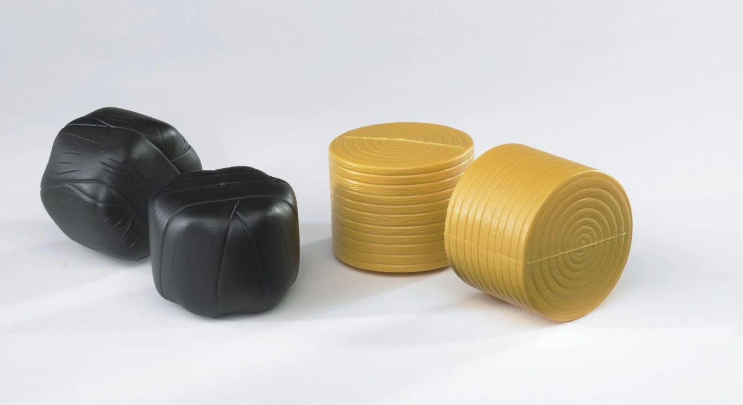 2 hooibalen ingeseald en 2 ronde hooibalen niet ingeseald.