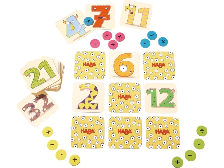 Help! Overval door de cijfermonsters! Wie een scherp verstand en een goed geheugen heeft, kan ze gemakkelijk vangen. Doel van het spel is om met steeds drie cijfermonsterkaartjes een rekensom met de goede uitkomst te vormen.
