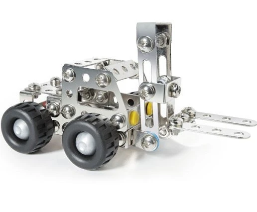 Eitech vorkheftruck De Eitech metalen beginnersets, zijn ideaal om te kijken of u kind een beetje aanleg heeft om te bouwen, met bouten en moeren. Het is op deze jonge leeftijd vaak nog een hele uitdaging voor de motoriek, om met de ene hand te schroeven en met de andere hand het boutje tegen te houden en ook nog de metalen onderdelen zelf op hun plek te krijgen. Maar met een beetje hulp van een papa of mama komen ze vaak een heel eind, totdat ze in staat zijn het helemaal zelf te bouwen. Deze Eitech vorkheftruck is geschikt om 1 model van te maken, maar is later weer uitbreidbaar en toepasbaar op de andere sets van Eitech metaal.