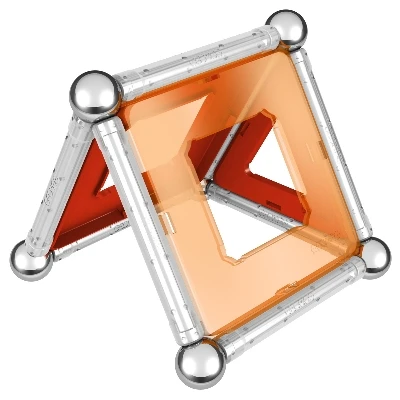 Set met geometrische panelen (vierkant en driehoekig), magnetische staafjes en bollen. waarmee mooie constructies kunnen worden gemaakt.Met Geomag maak je oneindig veel geometrische figuren, alle denkbare structuren, groot of klein, knappe tweedimensionale en realistische driedimensionale constructies.