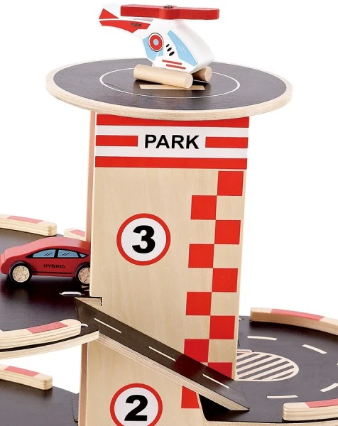 Met vier parkeerdekken, een benzinepomp, een lift en een landingsplek op het dak is dit wel een heel complete parkeergarage. De parkeergarage wordt geleverd inclusief twee auto’s en een helikopter.