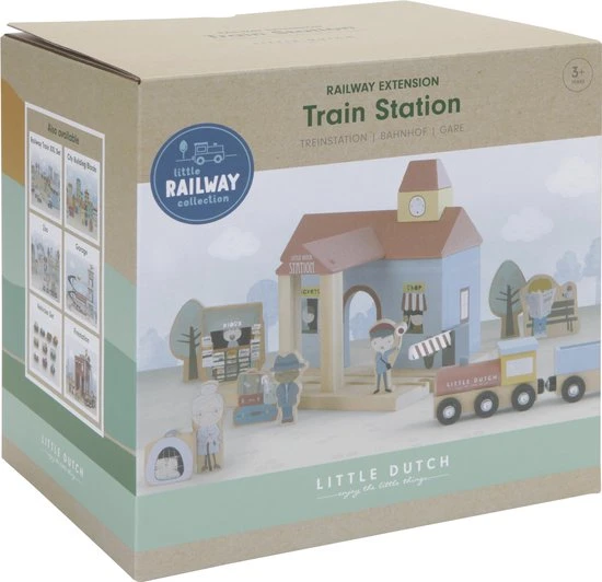 Laten we op een avontuurlijke trip gaan! Pak je spullen, neem je huisdier mee en spring op de volgende trein. De uitbreiding bevat een kiosk, conducteur, reizigers, bomen, koffers, kattenmandje, stationsklok, trein, locomotief en treinstation. Dit houten treinstation is één van de vele speelsets die aan de treinbaan XXL van Little Dutch gekoppeld kan worden. De houten figuren hebben gedetailleerde illustraties aan beide kanten en kunnen in de treinwagon geplaatst worden voor een leuke rit. Je maakt het treinstation helemaal af met de treinbaan XXL en de uitbreidingssets voor uren speelplezier. x