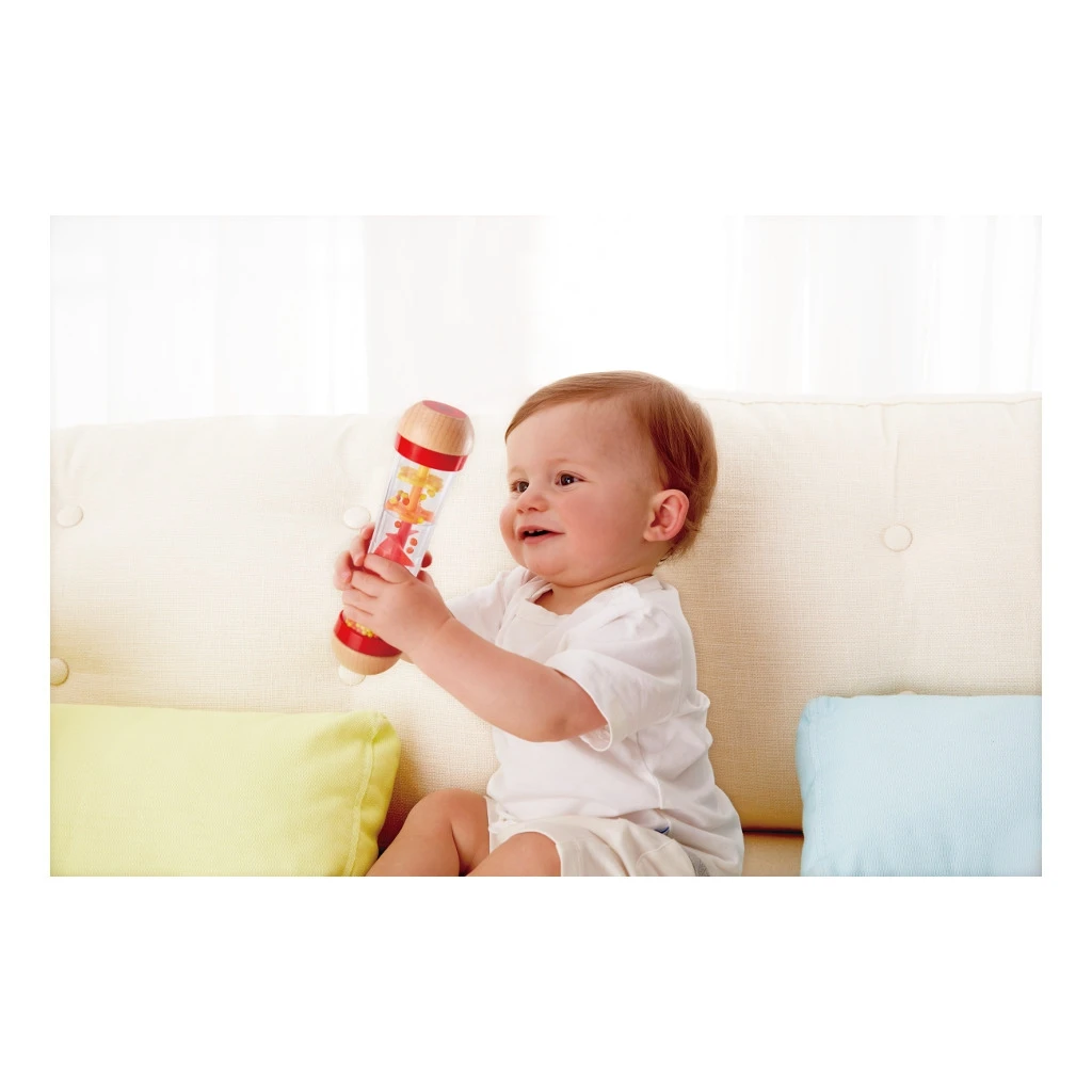 Deze kralenspiraal is een leuk speeltje voor kinderen. Draai deze regenmaker om en zie hoe de kralen langzaam naar beneden rollen en zachte regendruppelgeluiden maken. Deze rode kralenspiraal is gemaakt van hout en heeft een perfect ontworpen vorm voor een eenvoudige hantering door peuters. Met de eenvoudige grip kan je kind dit speelgoed makkelijk in een schuddende en rammelende activiteit veranderen. Deze rode regenmaker zorgt met de langzaam rollende kralen en de zachte regendruppelgeluiden voor een glimlach op het gezicht van alle kinderen.