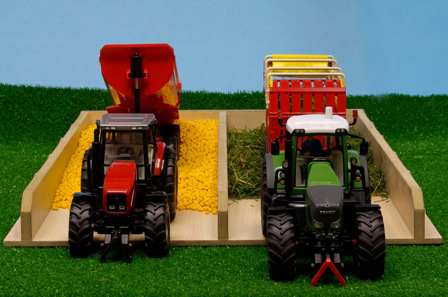 Bij een boerderij hoort een sleufsilo voor het voer van de koeien. Deze sleufsilo is geschikt voor tractors met een schaal van 1:32 en heeft 2 vakken, een voor bijvoorbeeld mais en de andere voor bieten of gras. Separaat zijn zakjes met 500 gram mais en een afdekzeil met bandjes leverbaar.